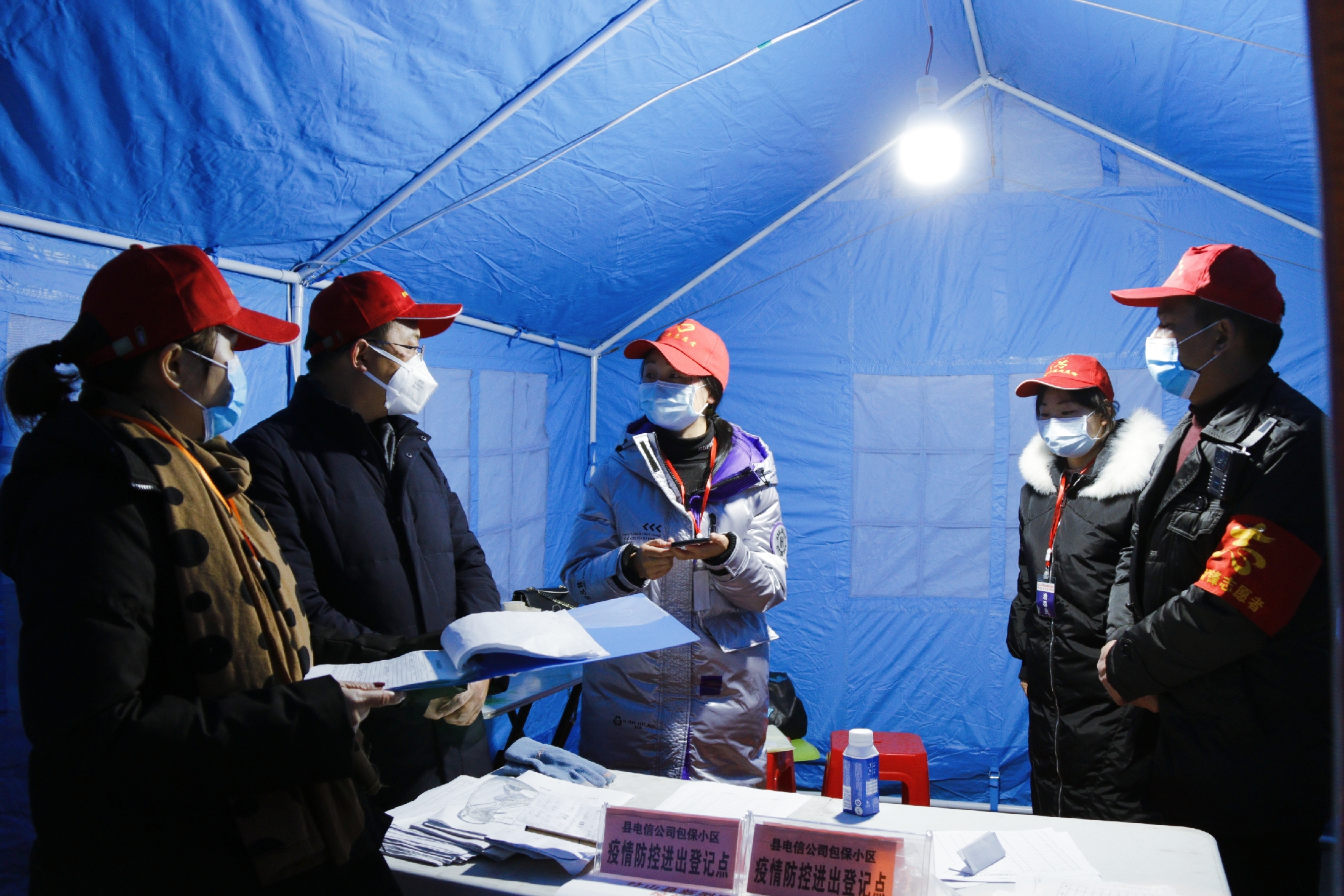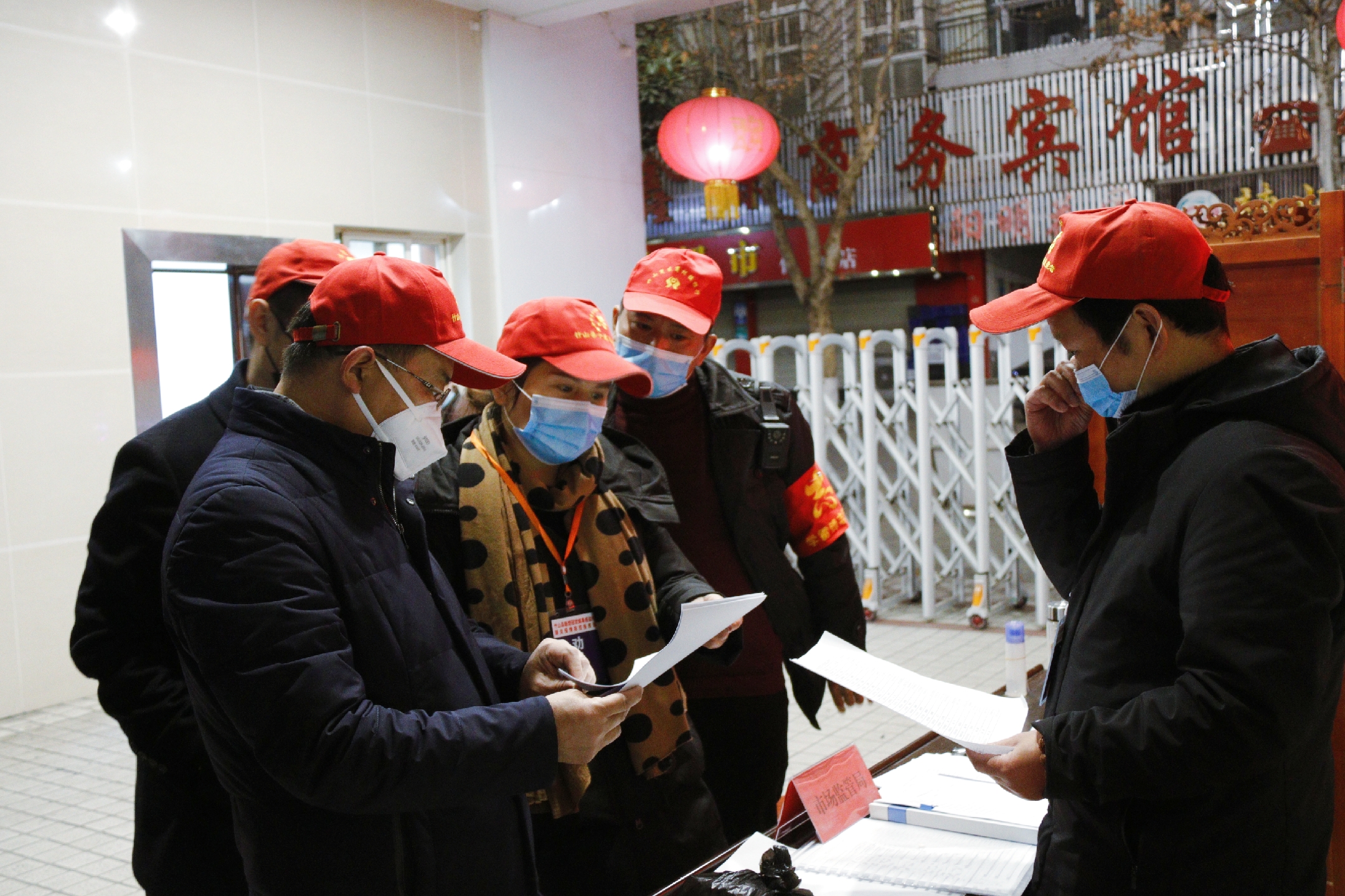 “晚上的温度比较低,大家注意把衣服裹紧,别感冒了。”“大家注意随时查看自己的口罩等防护用品使用状态,做好自身的防护工作。”2月17日晚上9点40分,笔者同督导组一同来到县市场监管局大门口,刚踏入门口,值守人员就要求我们进行体温检测。笔者稍站了一会,发现对进入内院的每个居民及工作人员,值守人员都会进行询问、登记,并逐一进行体温测试。其中还有在其它小区值守的工作人员陆陆续续的回到院中。