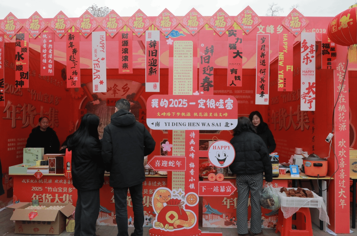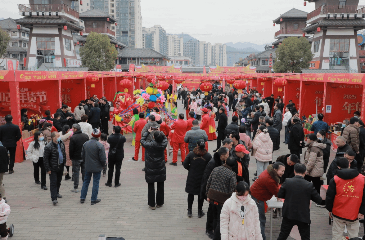 今日竹山网消息 观赏精彩表演、品尝地道年味、选购丰富年货……1月18日,2025年“竹山宝贝多”年货大集在桃花源街区女娲广场盛大开市,文化韵味、烟火气息与人情温暖相互交融,让年味儿愈发浓郁。