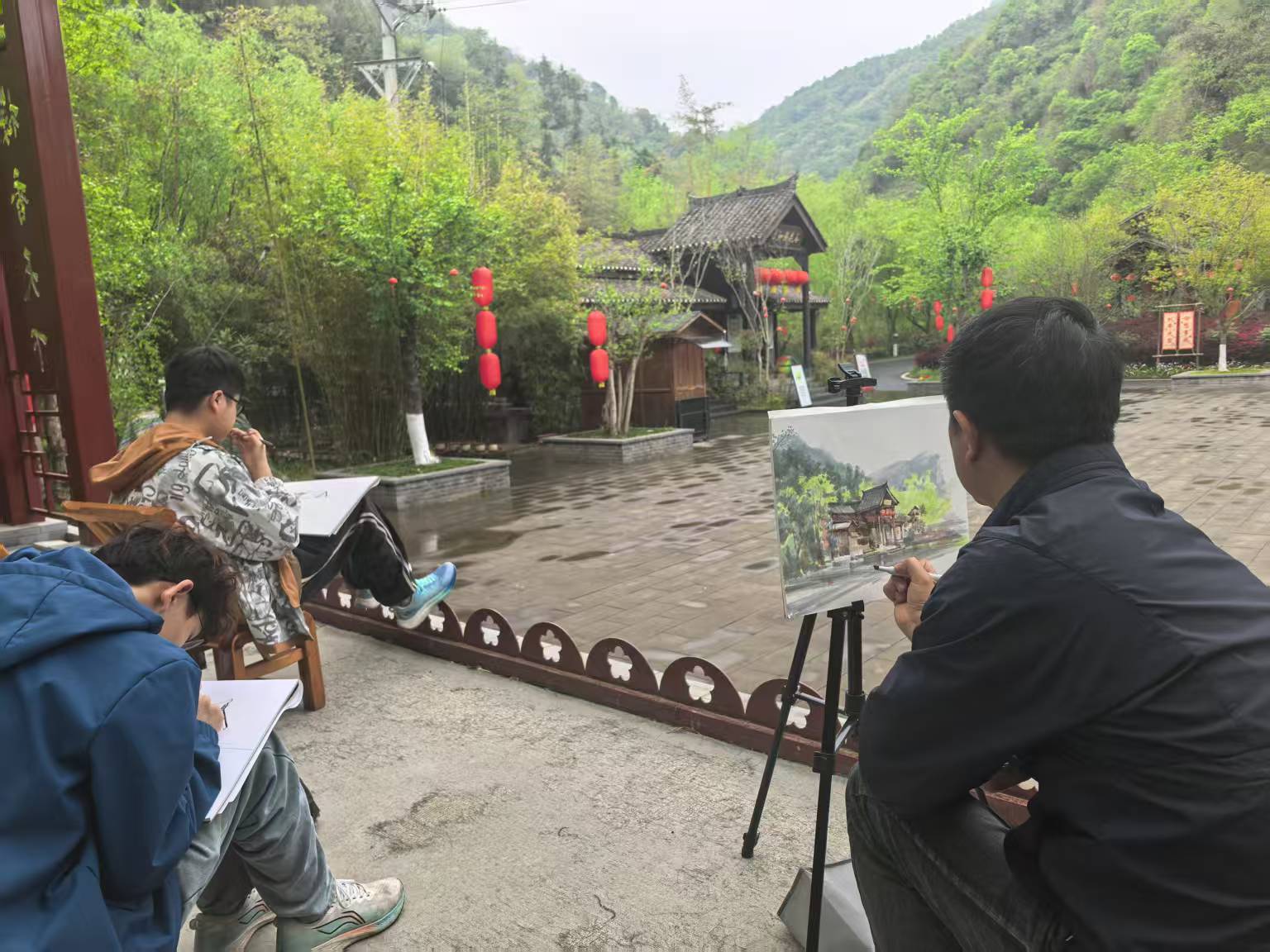 活动期间,师生们先后走进擂鼓西河田园旅游区、圣水湖旅游度假区、太和梅花谷及武陵峡·桃花源等景区,用画笔记录下竹山春日的诗意画卷。擂鼓西河百花竞放,田园风光美不胜;圣水湖碧波荡漾,景色宜人;太和梅花谷幽静秀美,武陵峡·桃花源宛如世外仙境……师生们通过艺术创作,将竹山的生态之美、人文之韵生动呈现。