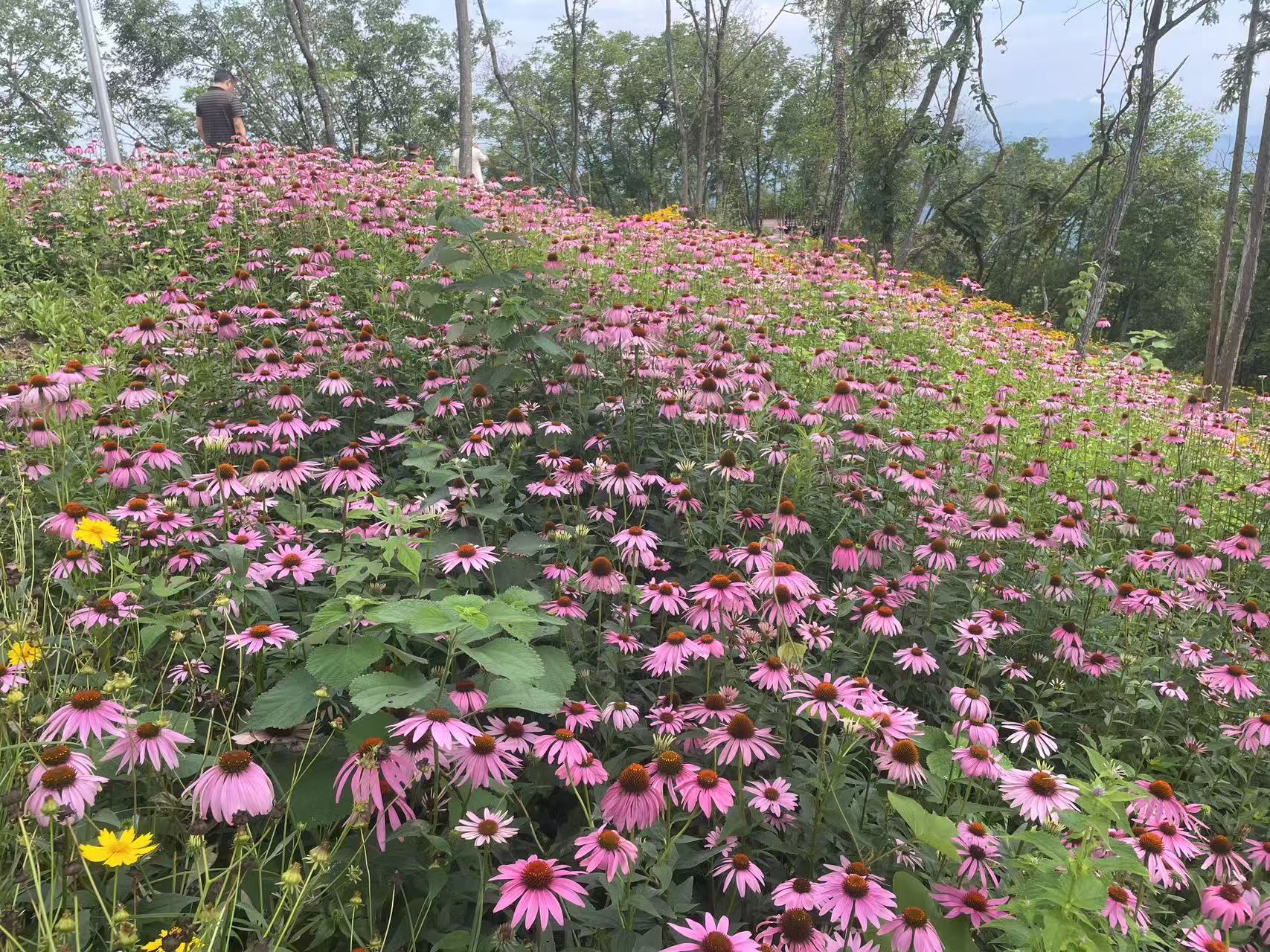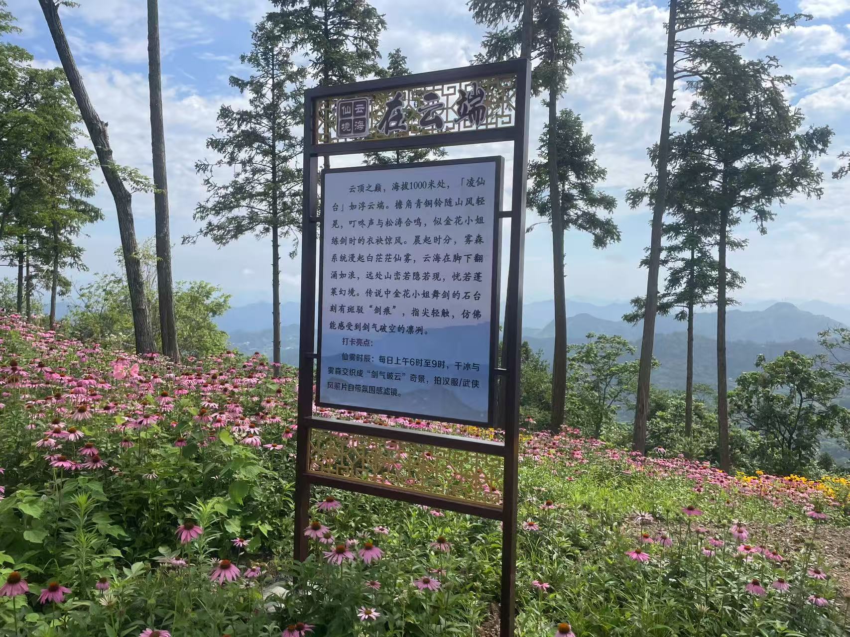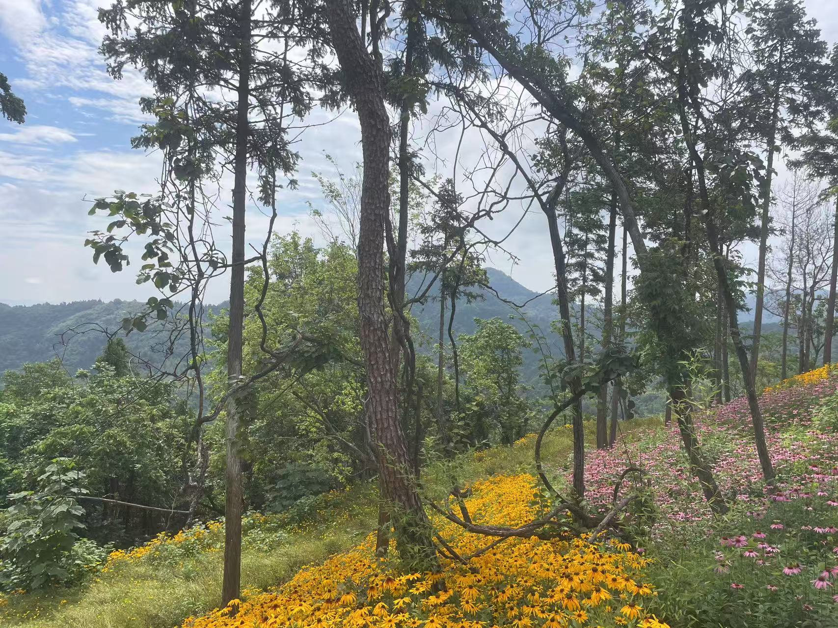 沿着登山步道攀登斗富山,沿途风景绝美,指示路标创意满满。临近山顶,视野逐渐开阔起来,映入眼帘的是一片片花海,五颜六色的鲜花竞相开放,蝴蝶在其中追逐嬉闹,好不热闹。古老的林木与藤蔓相互缠绕,各自舒展着优雅的身姿。林间小道干净整洁,走在上面舒适悠闲。清晨,可以攀登至山顶感受日出时的光芒万丈;傍晚,可以体验夕阳西下的静谧美好。登上山顶瞭望台,向南可近观官渡驴头山,向西可远眺宝丰女娲山,堵河蜿蜒向前的美好景象也尽收眼底。快来感受斗富山的无穷魅力吧。(张成焕)