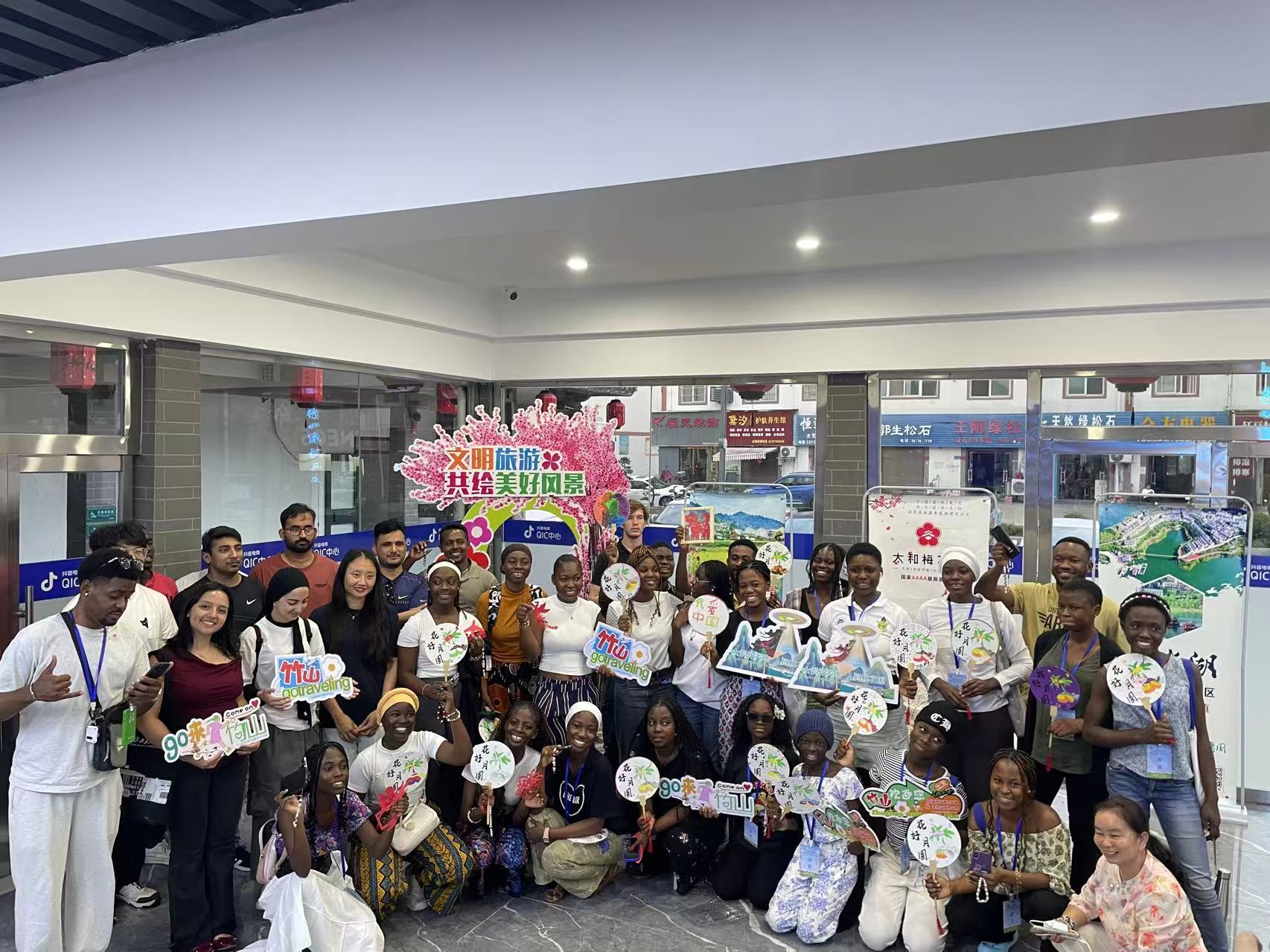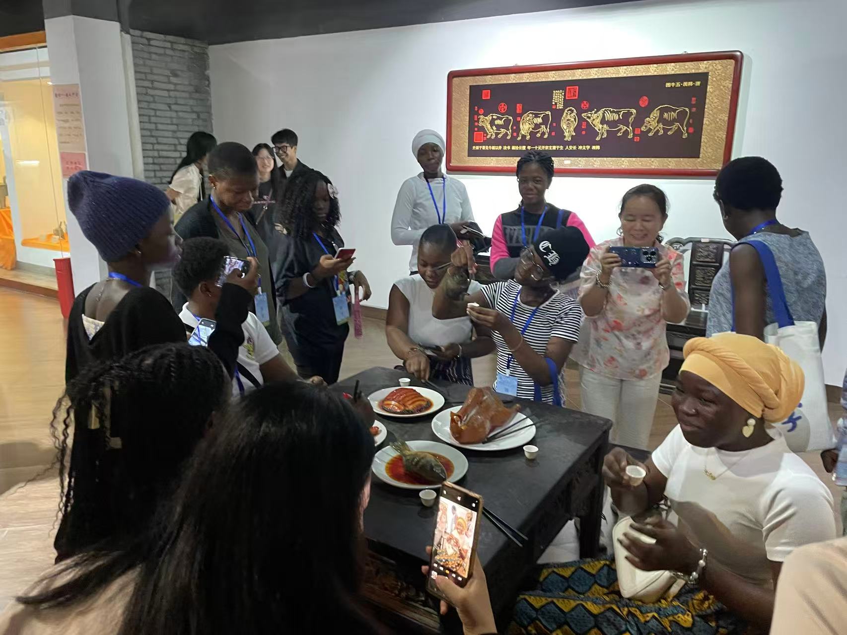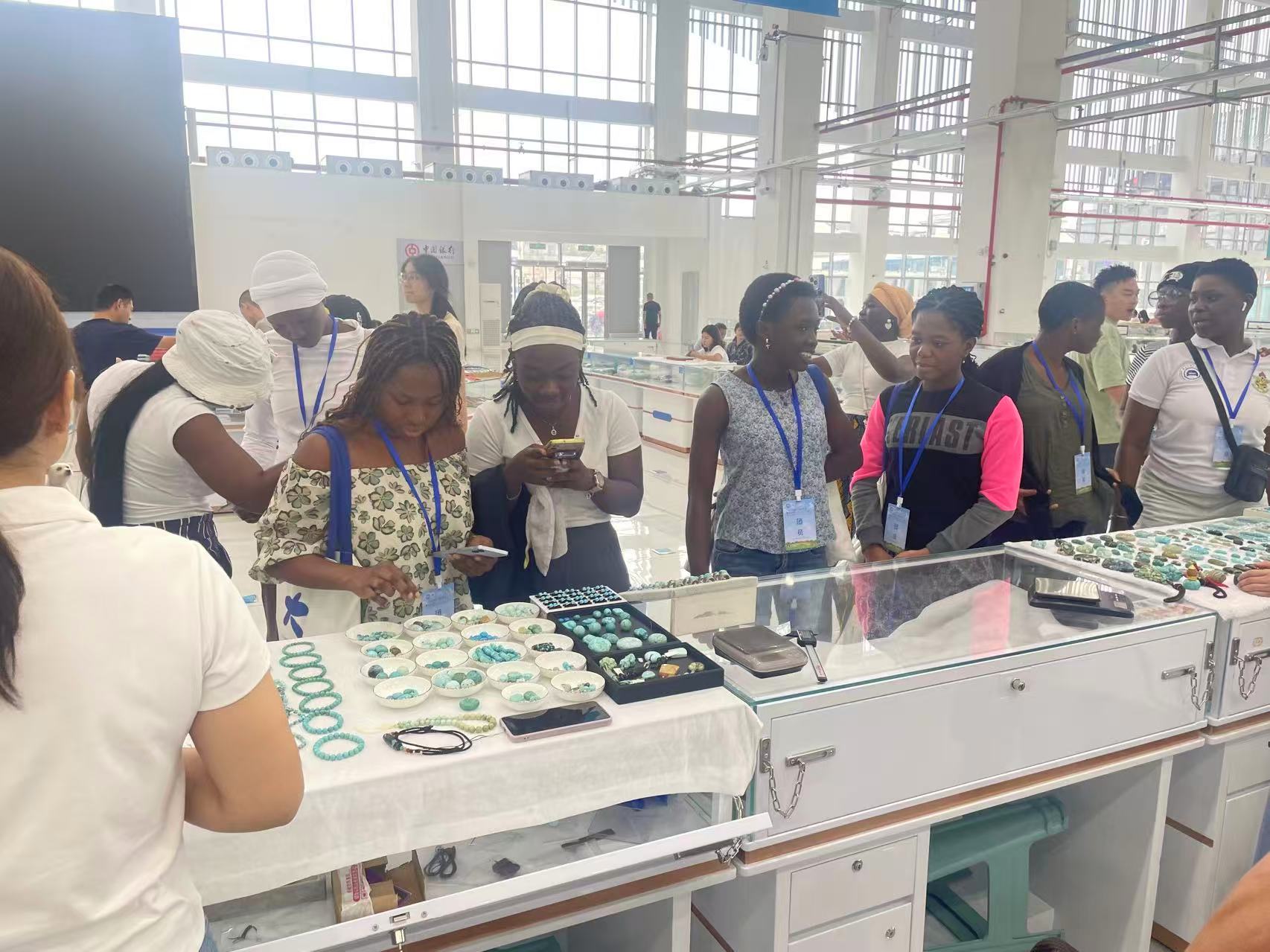 活动首日,研学团一行参观了上庸文化博览园,通过丰富的历史文物和翔实的图文资料,深入了解古上庸国悠久灿烂的历史文化脉络,感悟楚汉文化的源远流长。在竹山国际珠宝交易中心,留学生们不仅观赏了琳琅满目的绿松石艺术品,更深入体验了绿松石从原石到成品的制作工艺,感受“东方圣玉”的独特魅力。紧接着,众人走进桃花源街区,参观绿松石博物馆,系统了解其开采历史、文化象征和产业价值。