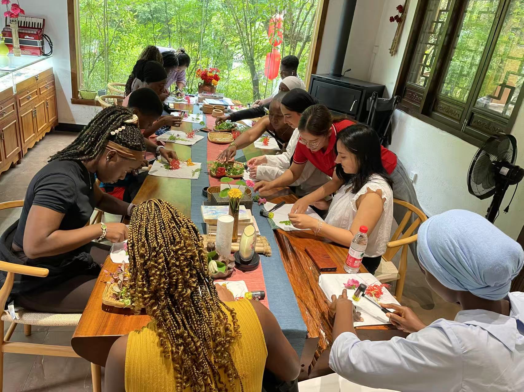 在桃花源街区中,传统文化体验区气氛热烈。剪纸巧手翻飞、绘画面卷渐展、珠串编织精细——留学生们在一刀一剪、一笔一画、一编一织中体悟中国民间艺术的匠心独运。团队前往太和梅花谷风景区游览,并体验了古老的传统技艺——拓印。在动手实践中,学员们不仅学到了拓印的基本技巧,更对这项传承千年的非物质文化遗产有了直观而深刻地认识。
