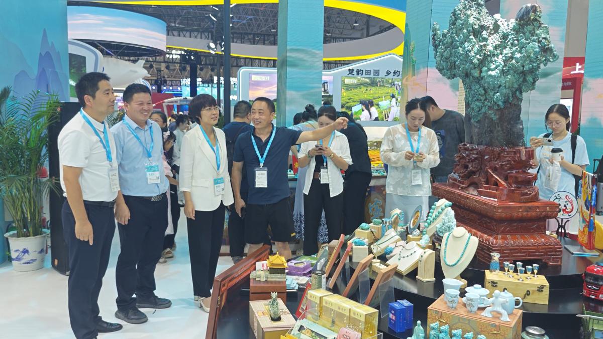 值得一提的是,十堰展区还专门设置了农特产品和绿松石展销区,集中展示了竹山优质的绿松石工艺品、特色农产品和深加工食品。来自竹山的有机茶叶、地道菌菇、天然蜂蜜等农特产品,以及设计精美、工艺精湛的绿松石首饰和摆件,吸引了大量参观者驻足咨询和购买,展销现场人气火爆,深受欢迎,充分展现了竹山“文旅 产业”融合发展的丰硕成果。
