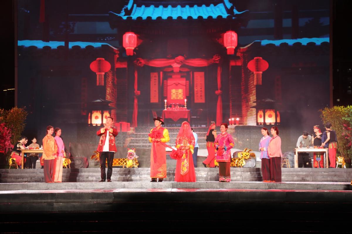 第三篇章《茂林传薪火》聚焦竹山百姓的烟火与坚守。《合欢喜宴》将地方特色宴席与热闹的嫁娶民俗搬上舞台,浓郁的烟火气与人情味扑面而来。演员们更是走下舞台与观众亲切互动,将全场热烈氛围推向高潮。