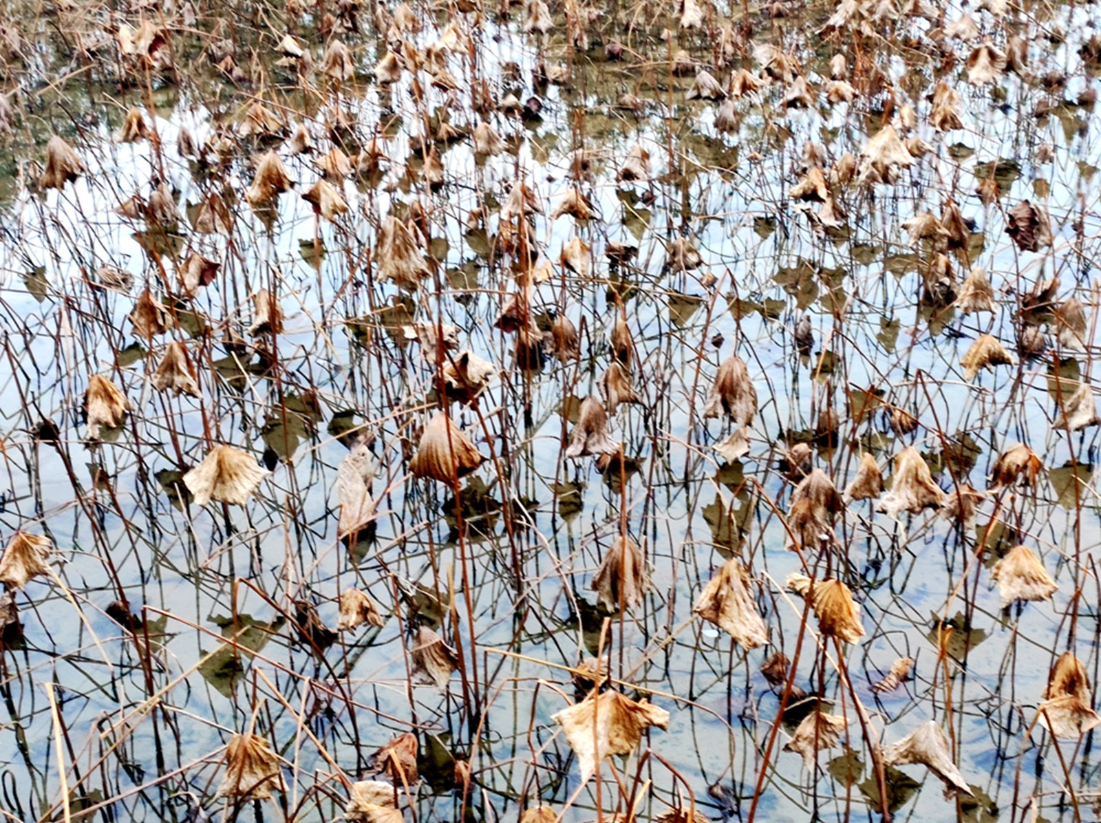 残荷不语,却有风骨,以残缺的姿态,诠释着生命的从容与厚重。残荷疏影诗留白,横斜清浅著文章;最是人生妙理处,几回得意几断肠。(张云朝)