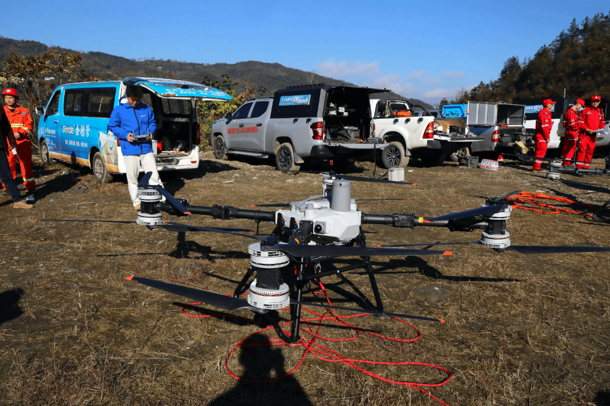演练还模拟了一名灭火队员在作业中腿部大面积烧伤,因难以进行地面转运,现场指挥部果断启动无人机救援方案,大载重救援无人机在队员协助下将伤员安全转运至救护点,充分彰显了“以人为本、安全至上”的应急处置原则。