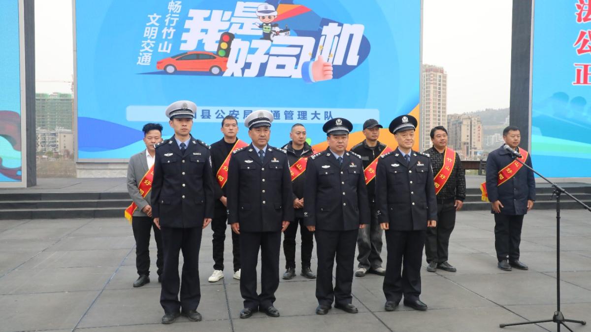 今日竹山网消息   12月2日,在第14 个 “122 全国交通安全日” 来临之际,竹山县公安局交管大队在女娲广场举行“文明交通・礼行天下”122全国交通安全日主题活动。县交管大队民辅警、驾驶员、百余名学生及市民共600 余名群众参与。为广大市民呈上了一场内容丰富、形式新颖的交通安全 “盛宴”。