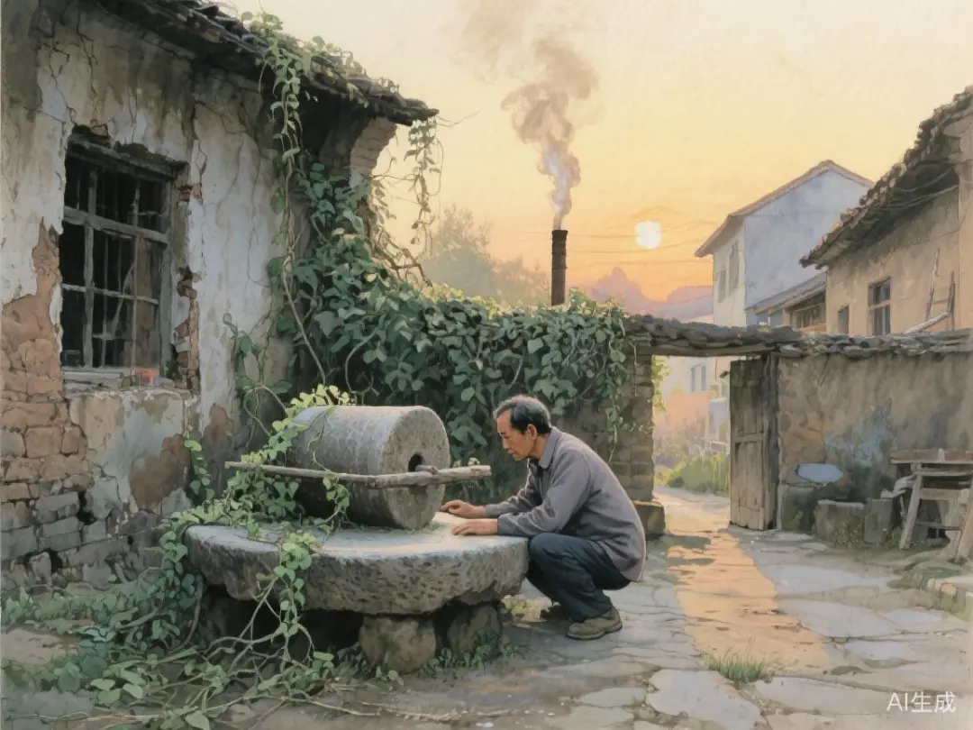 前些日回故土,老屋倾颓。院角石磨倒伏,藤蔓缠绕覆盖。我蹲下抚过冰冷磨盘,耳畔似又响起童年那悠长吱呀声。邻家老婶笑问:“还记得你娘做的浆粑馍不?香得很呐!全村娃都想蹭一口解馋。”