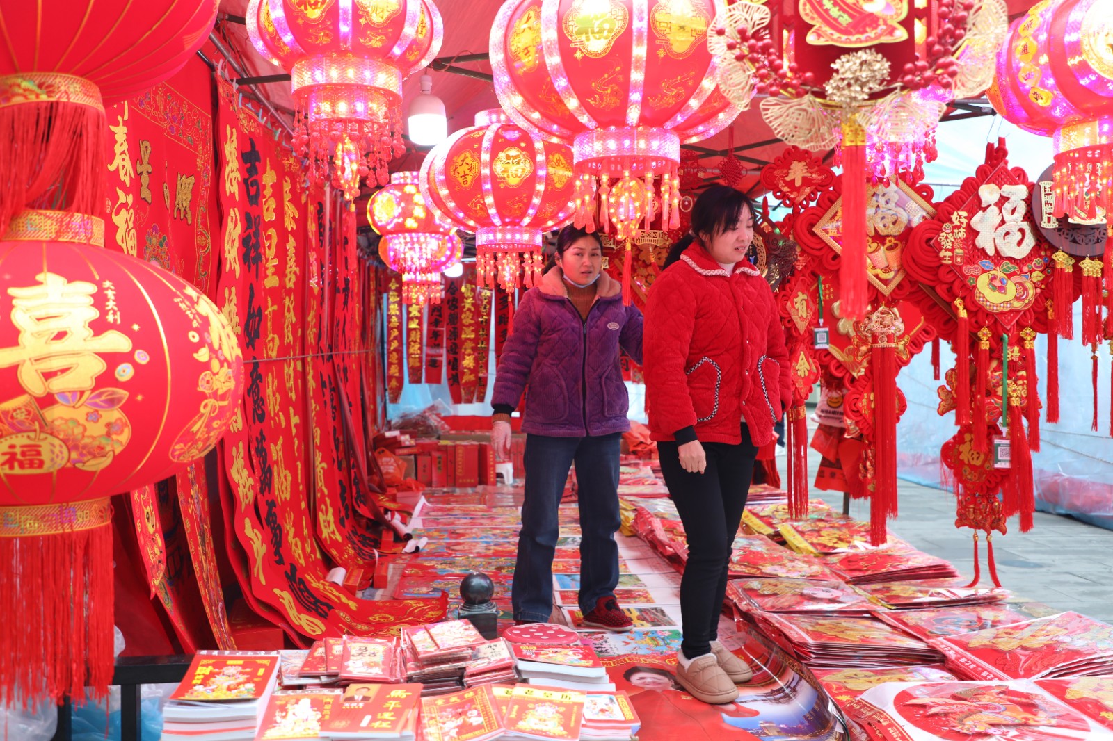 在春联售卖摊位,马年生肖主题挂饰、立体福字、精巧窗花、喜庆的对联琳琅满目,让人眼花缭乱。市民们穿梭其间精心挑选,品味字句间的美好期许,为新春增添了满满的烟火暖意。