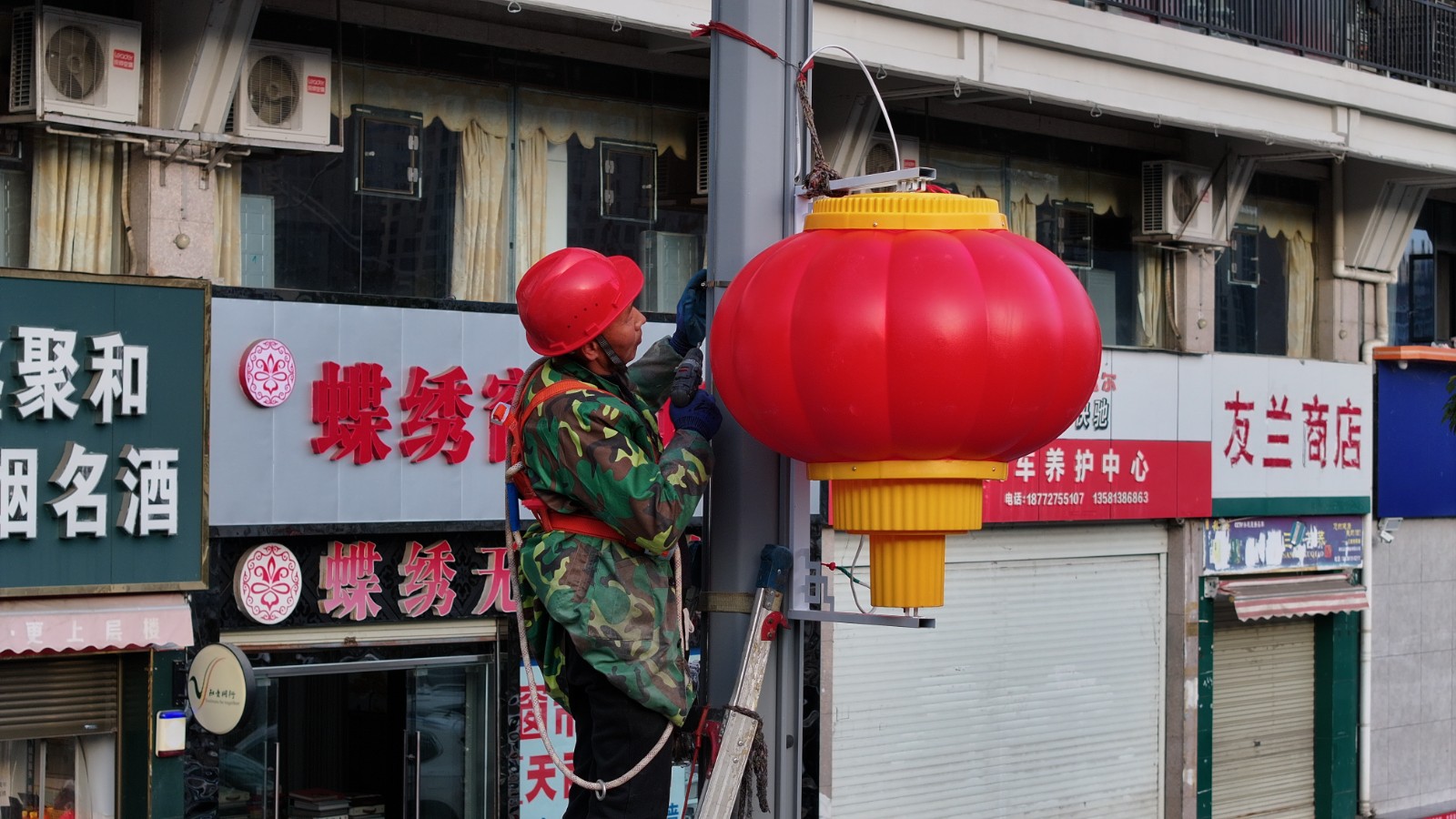 街巷间售卖春联的场景热闹非凡,而城区主次干道亮起的灯笼,更将这份春节喜庆氛围层层叠加、愈发浓厚。在纵横大道,安装人员有条不紊地将红灯笼组装、固定,再逐一悬挂于路灯杆上。一抹抹中国红成为冬日街头的靓丽风景,让市民提前邂逅新春暖意。