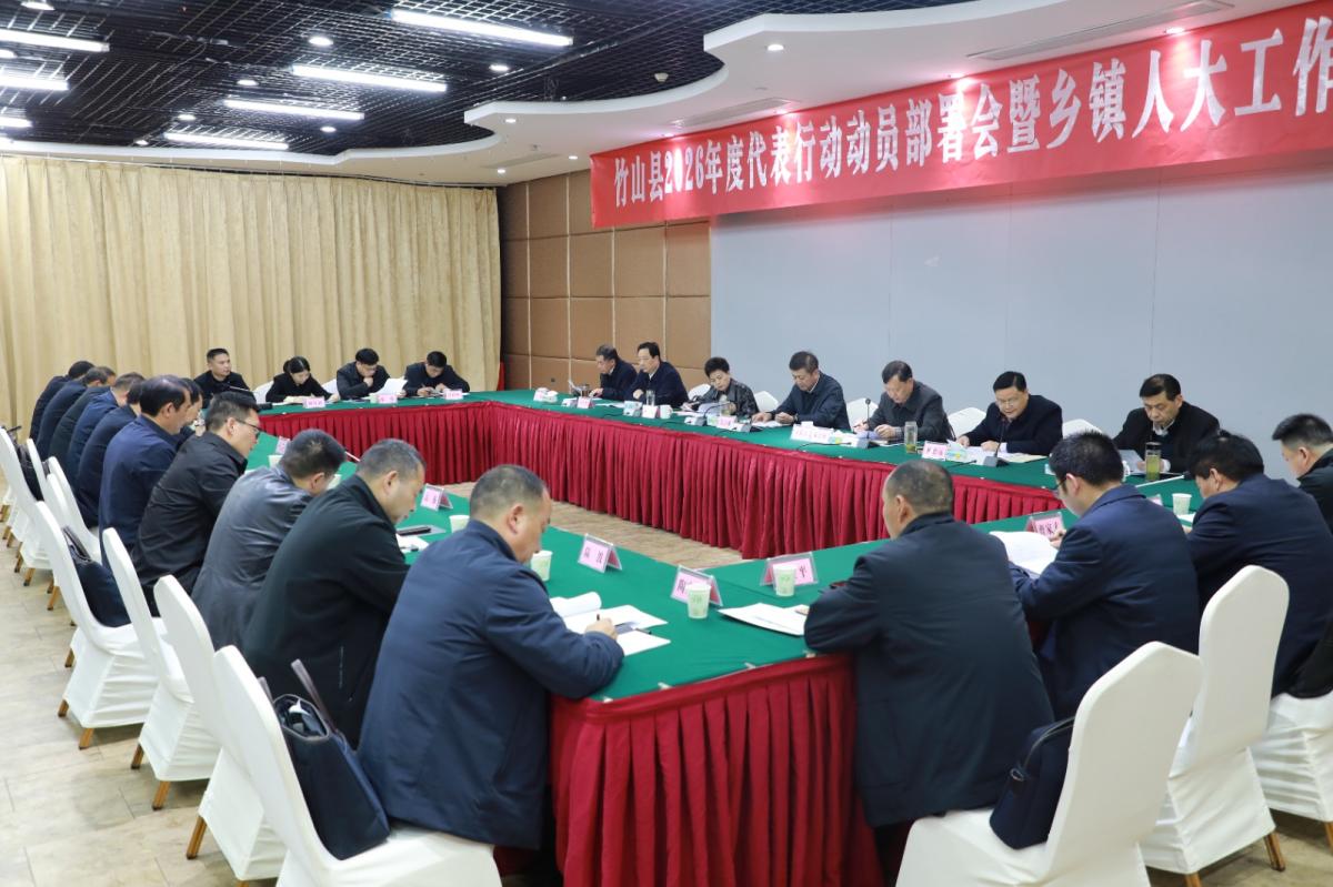 今日竹山网消息 3月26日,全县深化拓展“聚力支点建设·推动产业升级”代表行动动员部署会暨乡镇人大工作座谈会召开。县人大常委会主任毛昌盛,副主任朱德彬、周清荣、杨德远、刘甲华、刘锐、冯波出席会议。