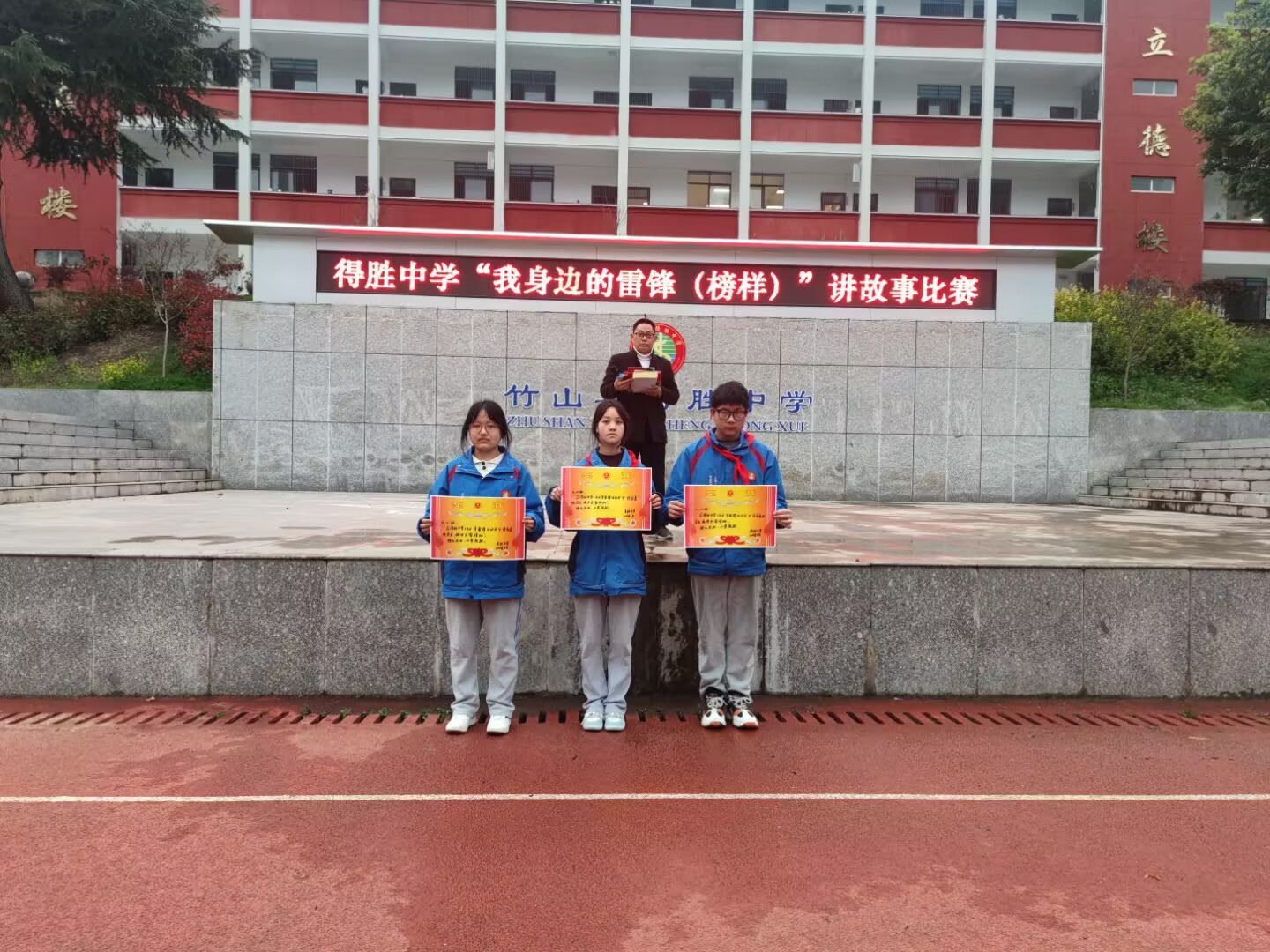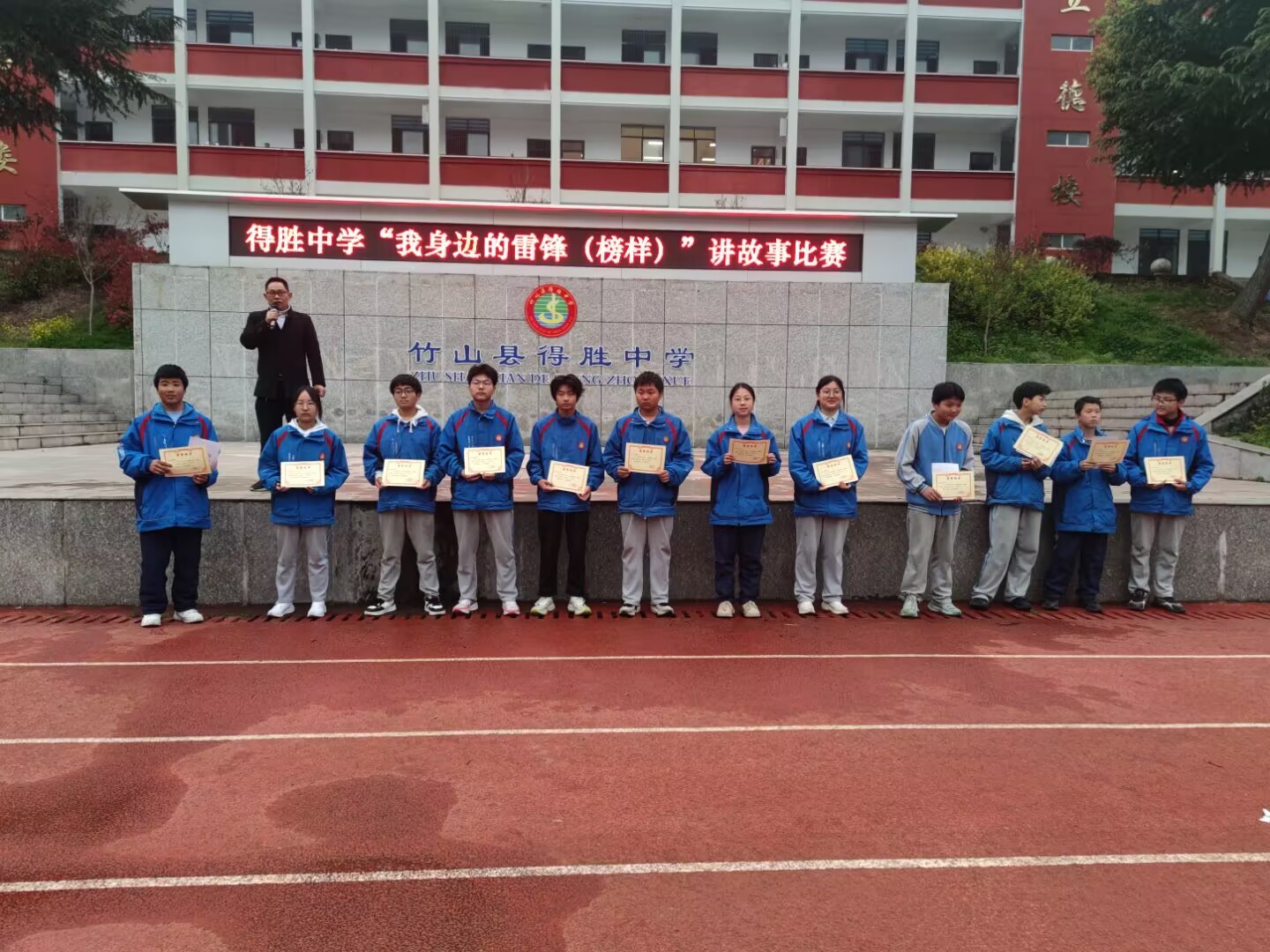 今日竹山网消息 4月2日下午,得胜中学举办了主题为“我身边的雷锋”讲故事比赛。此次活动由学校政教处主办,全校师生共计500多人到场观摩,共同聆听身边榜样故事,感受平凡中的伟大。