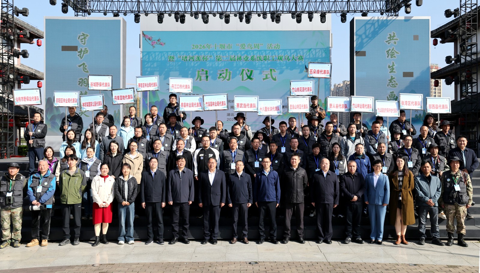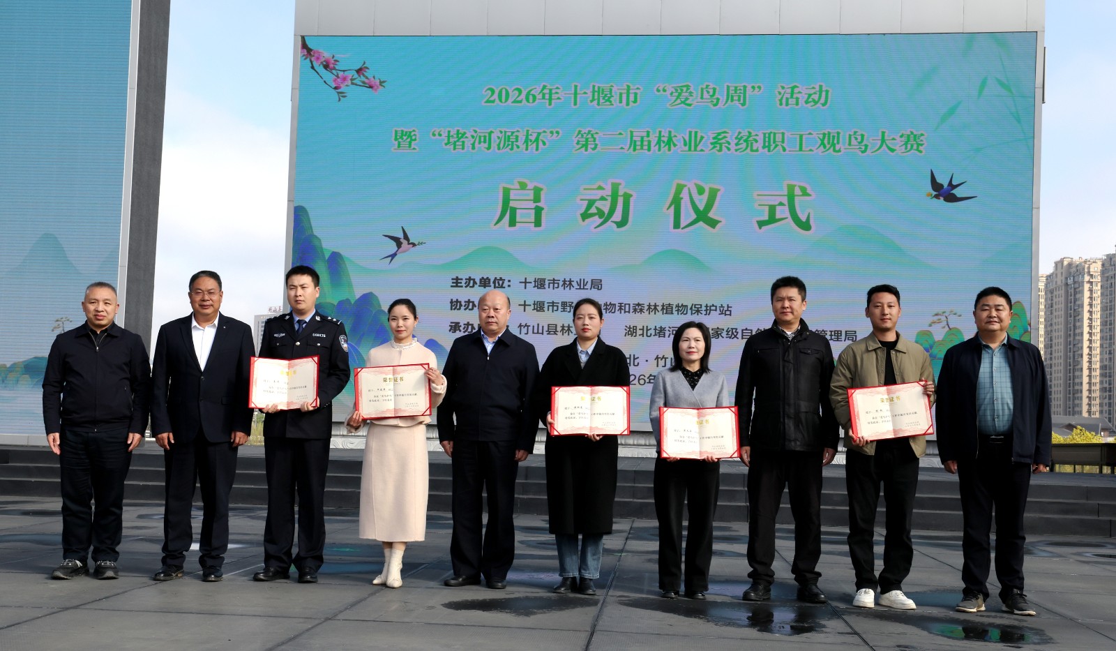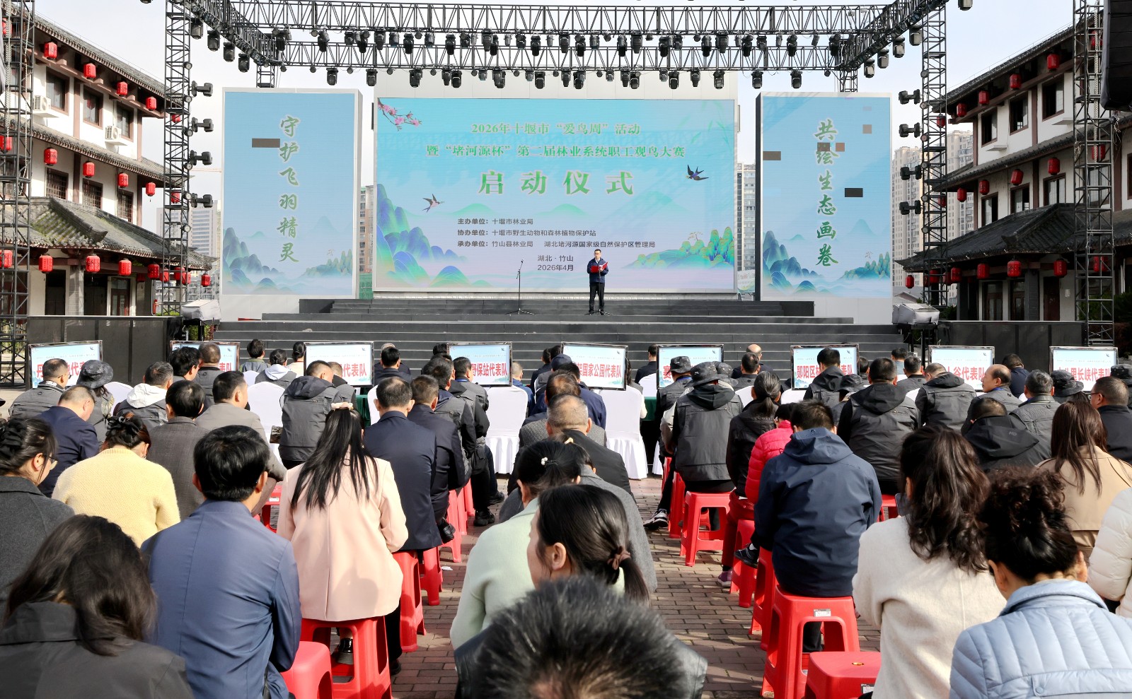 今日竹山网消息 春满桃花源,飞羽竞翩跹。4月1日,2026年十堰市“爱鸟周”活动暨“堵河源杯”第二届林业系统职工观鸟大赛在竹山县桃花源女娲广场正式启动,来自全市自然保护地、林业系统以及神农架、仙桃、谷城等地热爱观鸟的19支参赛队伍80余名观鸟爱好者齐聚堵河源,共同开启本次观鸟赛事。
