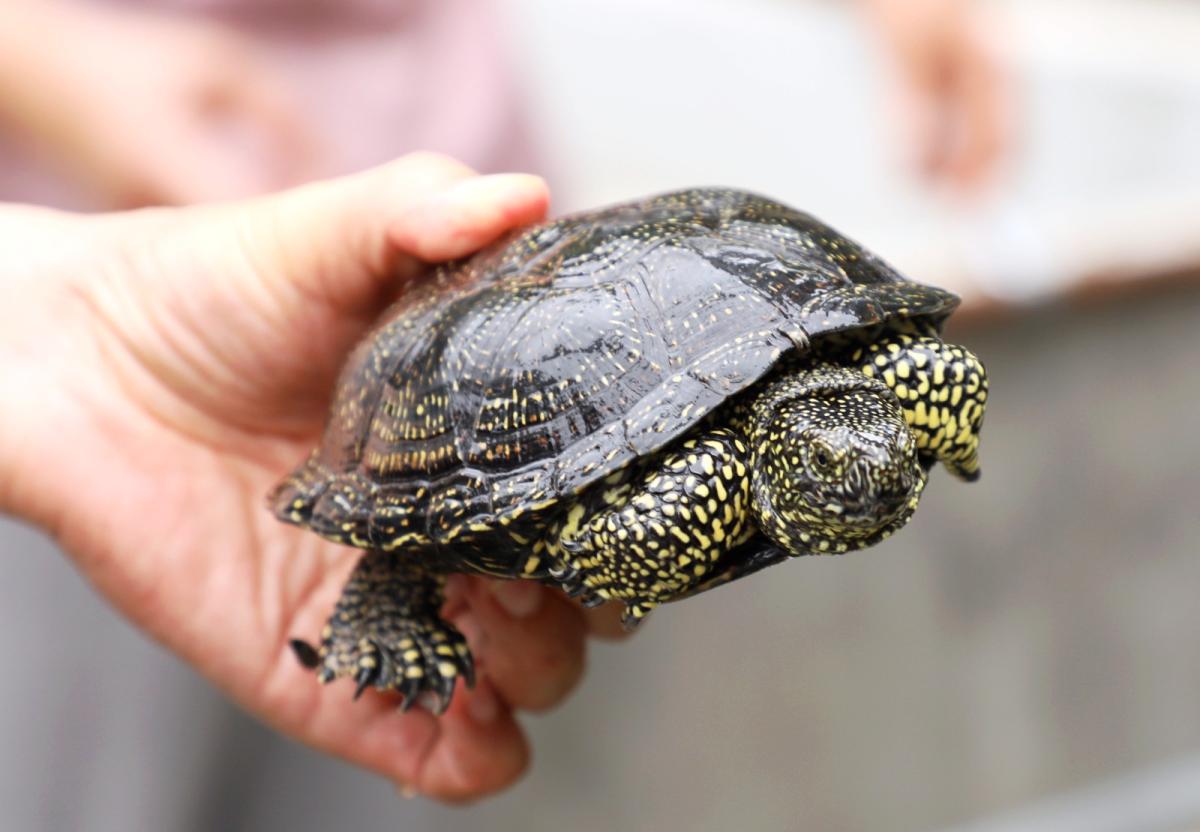 近日,笔者实地探访发现,张峰的养殖池内近千只欧泽龟背甲遍布金色斑点,在阳光下熠熠生辉。据张峰介绍,这种龟是从欧洲进口的,是一种高端观赏龟,因品相出众,单只售价可达600至1000元,极品龟甚至价值上万元。