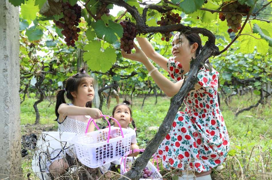 “我平时学习压力很大,正好趁着今年暑假,妈妈带我来这里摘葡萄,我既体会到了采摘的乐趣,又尝到了甜津津的葡萄,很开心。”游客向奕辰说。