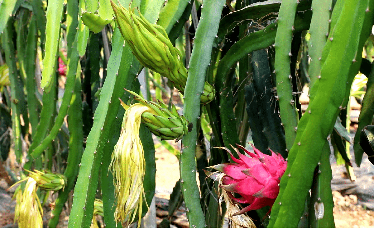 “这个火龙果它是属于热带水果,它也只有在高温的时候能成熟,一般的情况呢就是最热的时候,它成熟两季就是7月到8月、9月到10月,这两季,它会大量的长果。”果园管理员王丽说。
