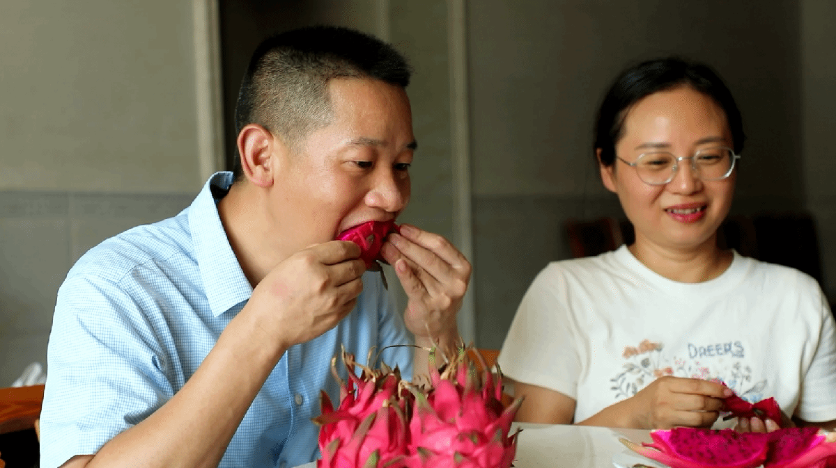 “这个火龙果味道好,酸酸甜甜,每次开园我们都来摘好几次,家里老人小孩都爱吃。”游客李章勇说。