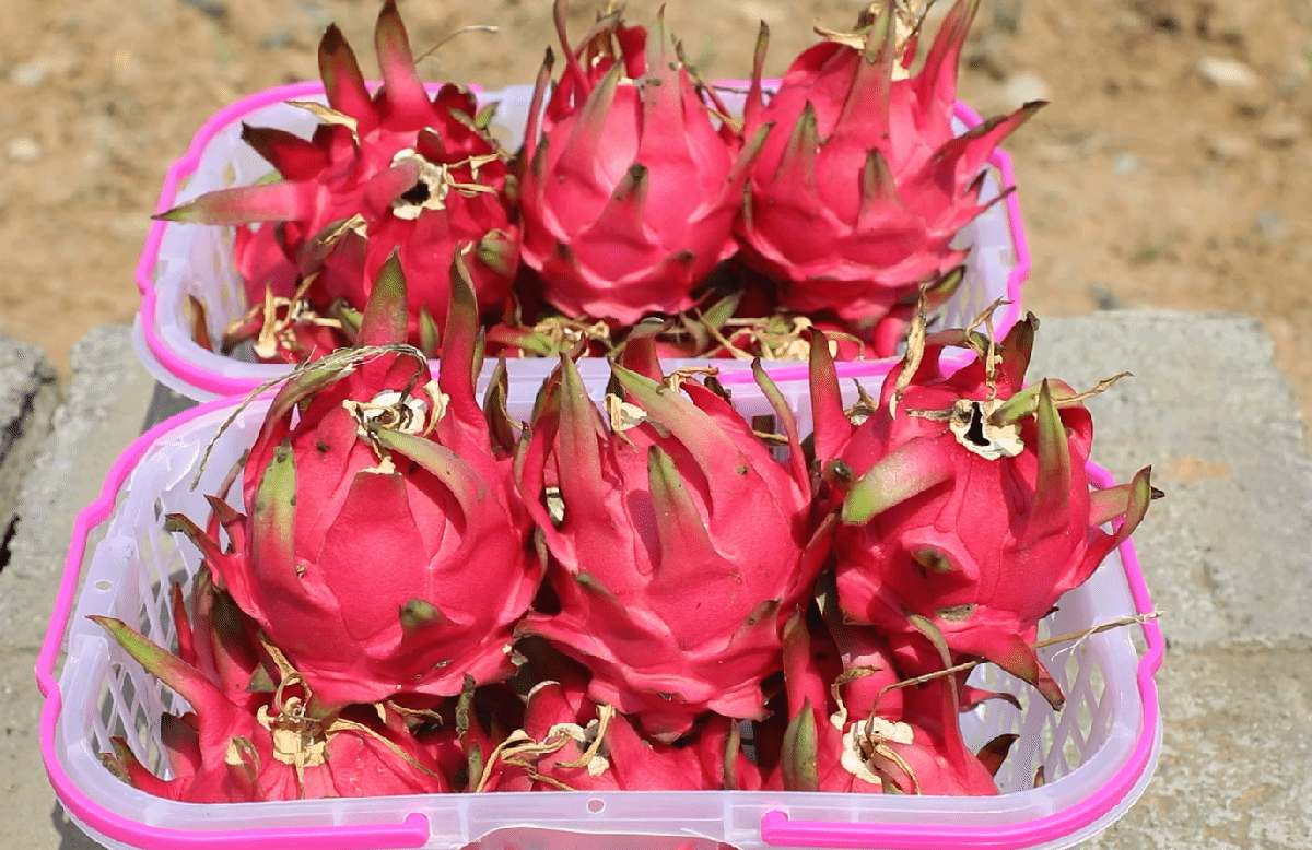 由于气候原因,溢水火龙果虽只能在大棚里种植,但这里的果子生长周期长,从育苗要挂果全程不打农药,加之管理到位,火龙果果实饱满,水分充足,且甜度高,深受消费者的喜爱,一上市便供不应求。