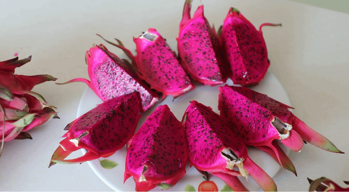 据果园管理员介绍,如今果园里种的这个火龙果叫京都一号,它甜美多汁,富含丰富的花青素,口感上带有一股草莓冰淇淋的味道。