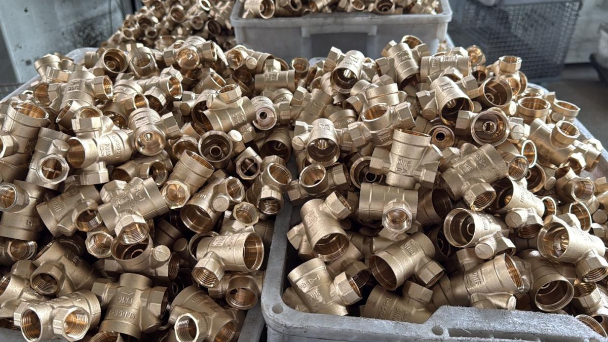 “首先第一点,我们这些产品都是采用的国标hpb59-1黄铜一体成型的。第二点,产品的壁厚都是按照国家标准gb/t8464的要求生产的,保证产品不易断裂。第三点,产品都是采用红冲锻压工艺一体成型的,抗压性和密封性会更好。”张志国说,虽然产品不大,但结构很复杂,红冲做完之后还需要进行十多道工艺才能把产品做好。