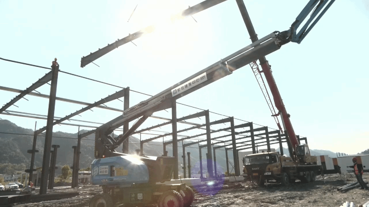 近日,记者在鱼岭工业园的普洱茶醋厂房建设现场看到,大型吊装机来回穿梭,将一根根钢梁运送到指定位置,工人师傅们正头顶烈日进行厂房的钢柱安装、钢梁吊装和檩条天沟吊装,现场一片热火朝天的景象。