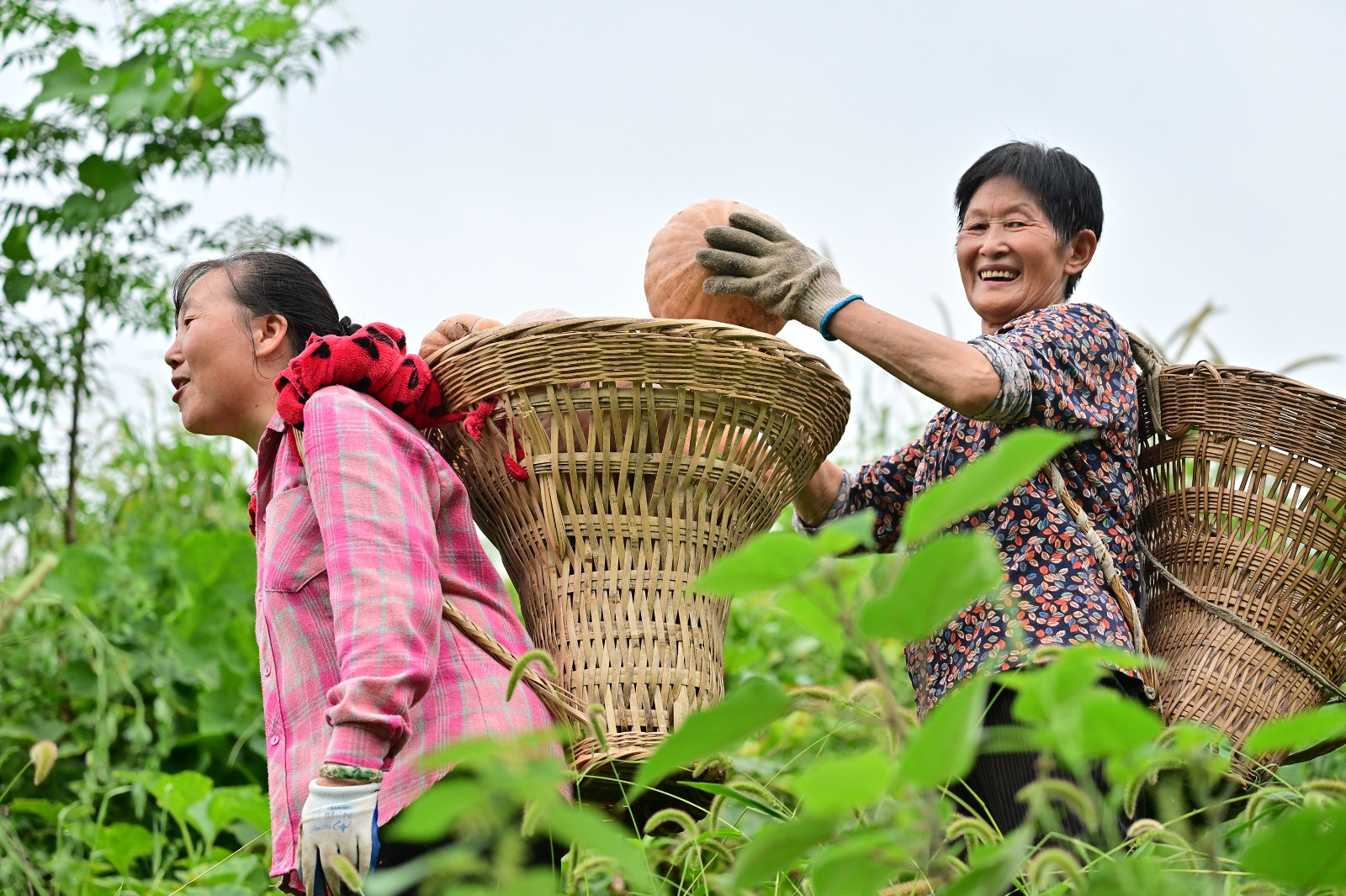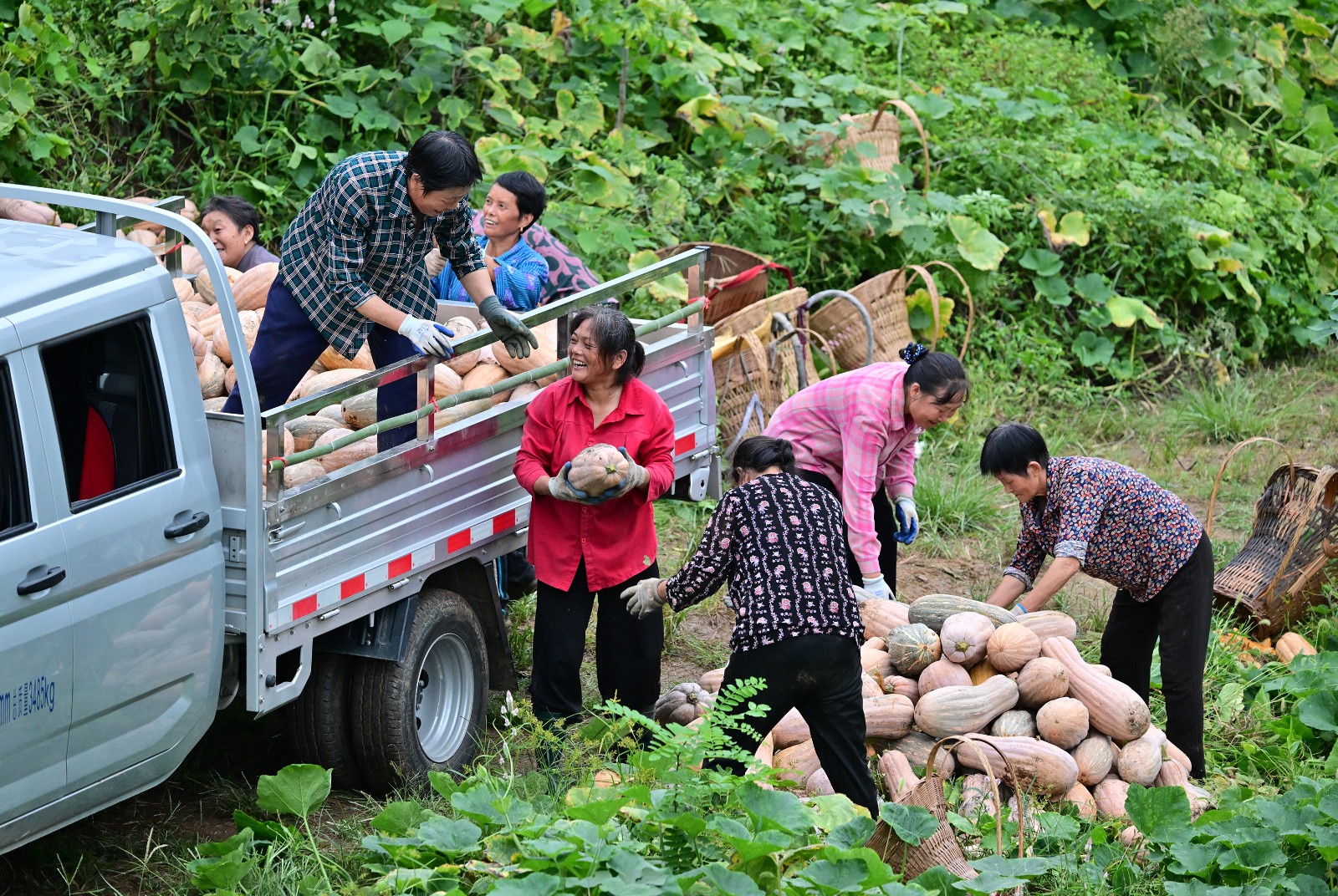 连日来,溢水镇小东川村村民集中采收油茶里的南瓜,亩产达2000公斤,分批供应重庆、广东等多个省市商超。近年来,溢水镇积极探索“油茶 南瓜”“油茶 蓖麻”“油茶 魔芋”等以“短”补“长”林下套种模式,盘活3万亩山林资源,强化村党支部、合作社、技术指导和农户各自职责,推行“统一收购、统一包装、统一品牌、统一价格、统一销售”的营销模式,增强农副产品市场竞争力,拓展农民增收致富渠道,实现生态效益和经济效益双赢。(石濡华 徐平 摄)