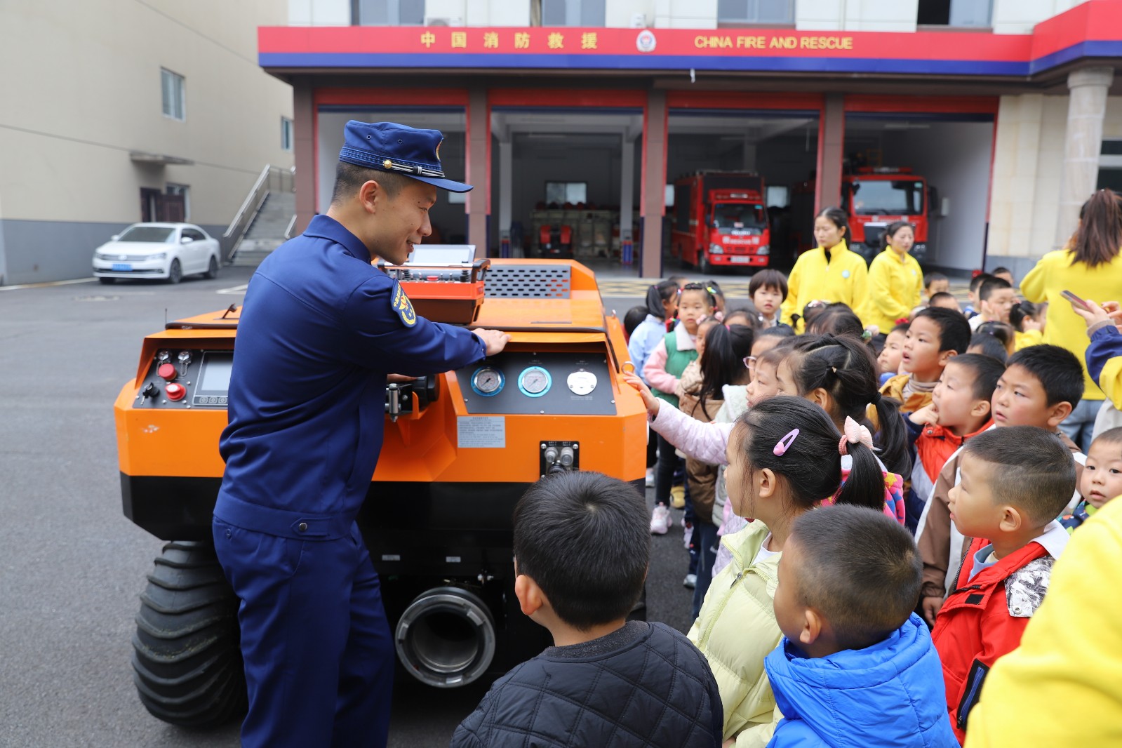 11月6日,县消防救援大队举行“消防站开放日”活动,来自县智童幼儿园的100余名幼儿在老师的带领下通过实践参观、互动体验、知识讲解等多种形式,让孩子们在轻松愉快的氛围中掌握消防安全知识,播下安全“种子”。活动现场,在确保安全的前提下,小朋友们亲手触摸部分器材、试穿灭火防护服、乘坐消防救援车,体验成为一名“小小消防员”。(马芳芳 摄)