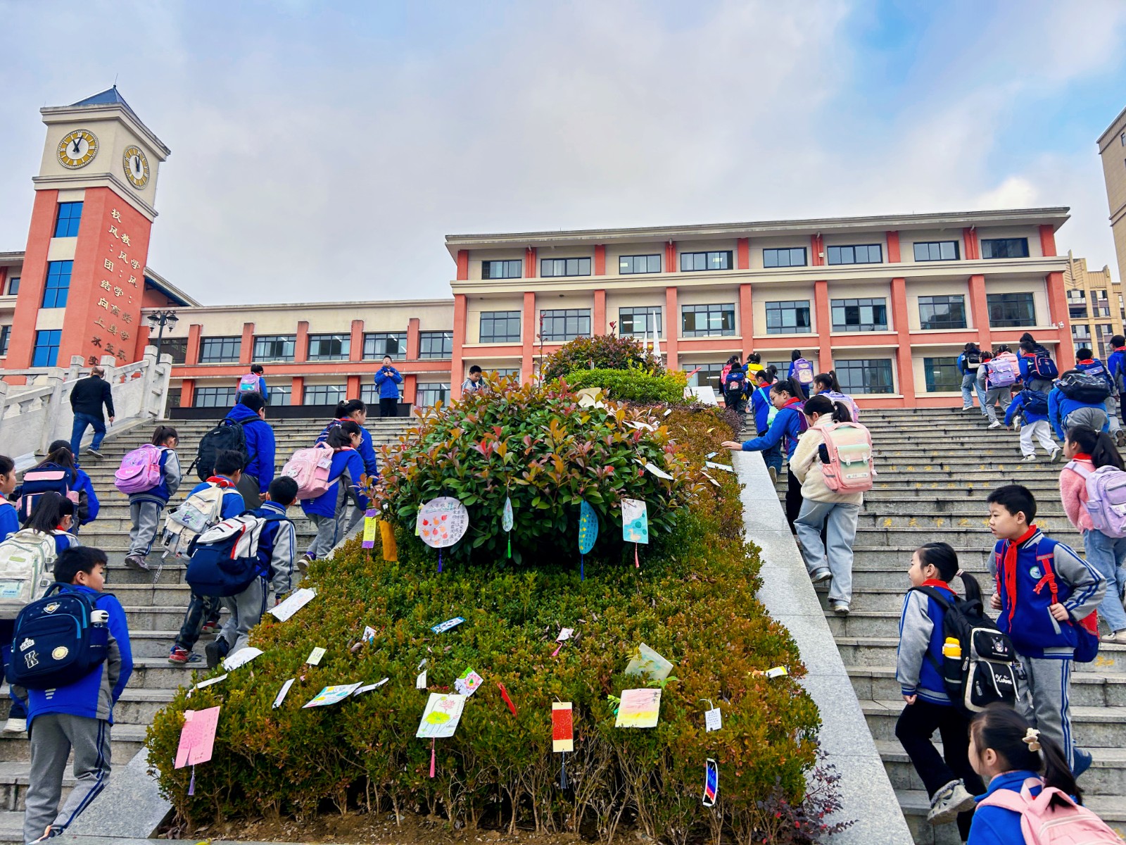 近日,恒升小学举办了“最美书签”展示活动。六年级学生将课堂上的奇思妙想与艺术才华相结合,制作了数百枚精美绝伦的书签,为秋日的校园增添了一抹独特的文化亮色。本次活动打破了传统的展览模式,将同学们的创意作品从室内展厅“搬”到了户外的自然天地。一片片造型各异、色彩斑斓的书签,或被细心地悬挂在校园的树枝上,犹如结出了智慧的果实;或被巧妙地装点在花坛中,与绿叶相映成趣,形成了一道道流动的风景线。 (吴琼   摄)