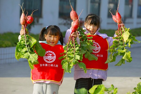 深冬时节,宝丰镇第二幼儿园的种植园内却生机盎然。12月9日上午,园内1000余平方米的劳动基地上回荡着孩子们清脆的欢笑声,一堂别开生面的“田园课堂”正在这里生动展开。绿油油的油菜整齐排列,白菜、萝卜、上海青、四季葱等蔬菜长势喜人,孩子们蹲在田垄间,用好奇的眼睛观察着叶片上的纹理,用稚嫩的小手轻轻触摸泥土的温度。(朱本双 摄)
