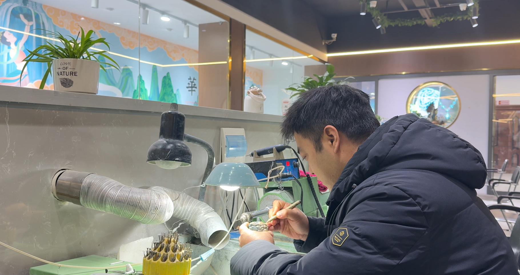 佳作背后是千锤百炼的打磨,镂空工艺是核心难点,飘带、梅枝、纹饰需毫厘精准,十数次修改草图的执着,让每处细节尽显工艺精度。