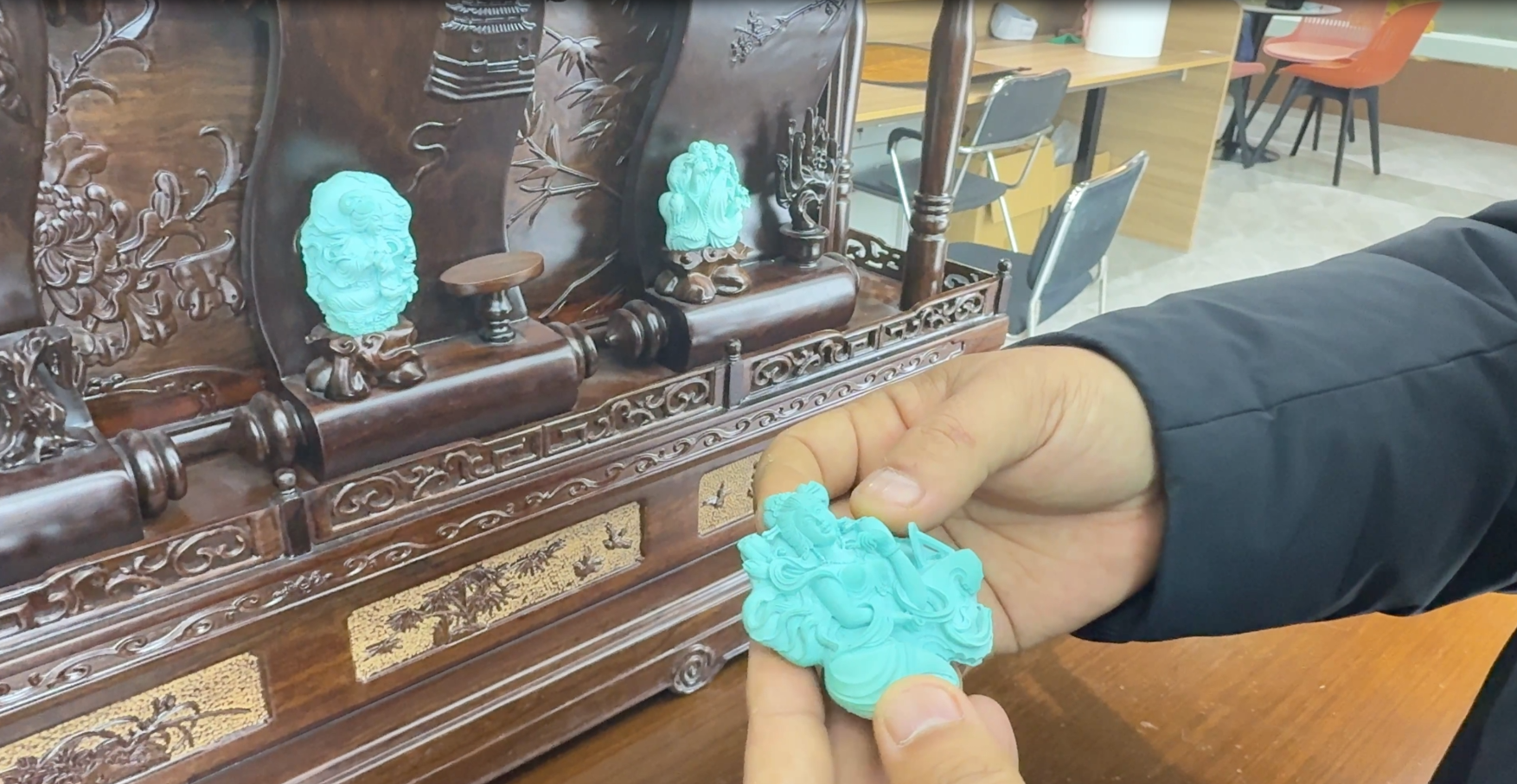 深耕创作的同时,刘志坚收授三名徒弟,既传刻刀技法,更授文化敬畏之心,引导弟子以情待石,为产业注入新生力量。