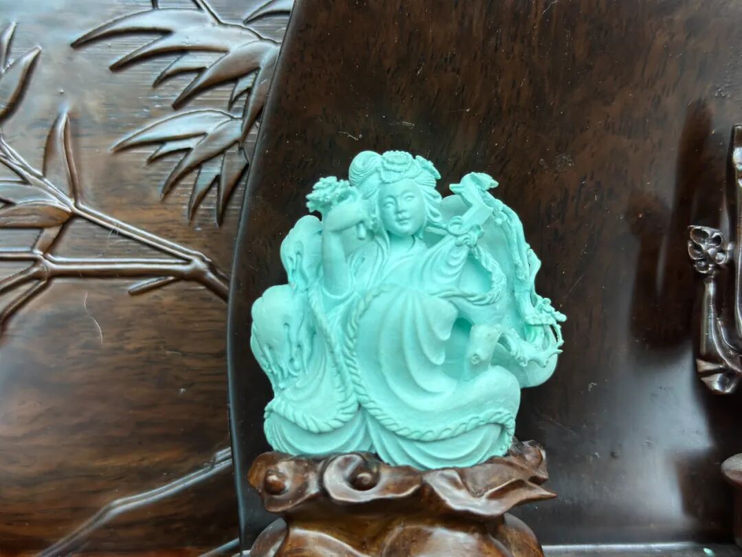 好品竹山,品牌推荐。当古典美人的千古风韵,遇上天然绿松石的灵秀,匠人便以刀为笔、以石为纸,将美人神韵与松石之美巧妙融合。本期,就让我们共同聚焦来自雕刻名家刘志坚的佳作——沉鱼落雁闭月羞花,共同欣赏这件松石与美人的邂逅之作。