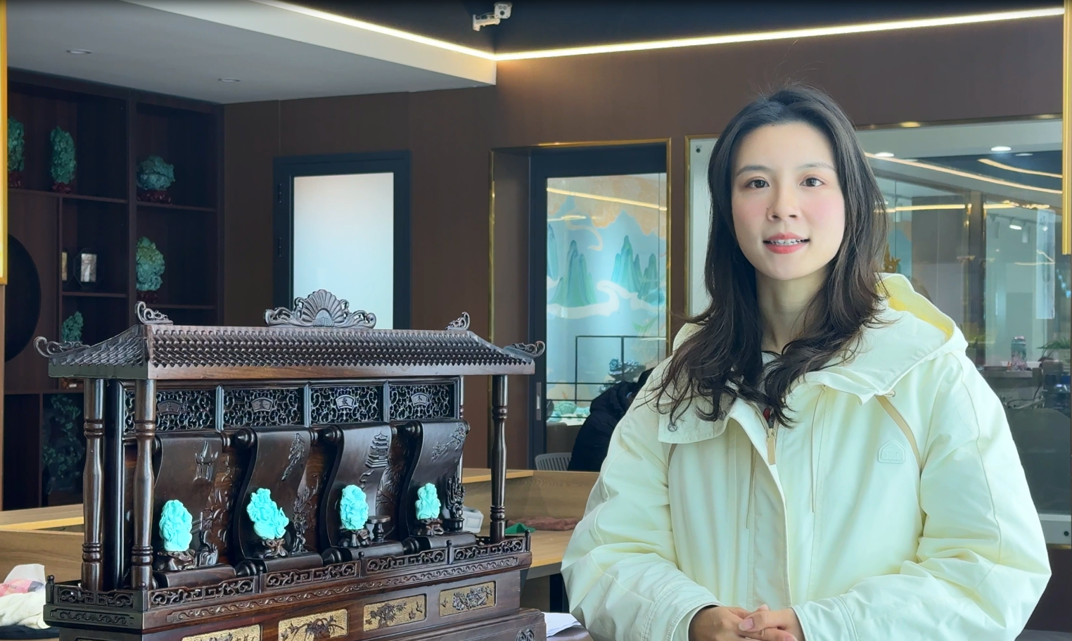 刘志坚介绍,这块石料的颜色瓷度和净度很高,雕刻完成后,采用磨砂工艺,可以更好还原细节。
