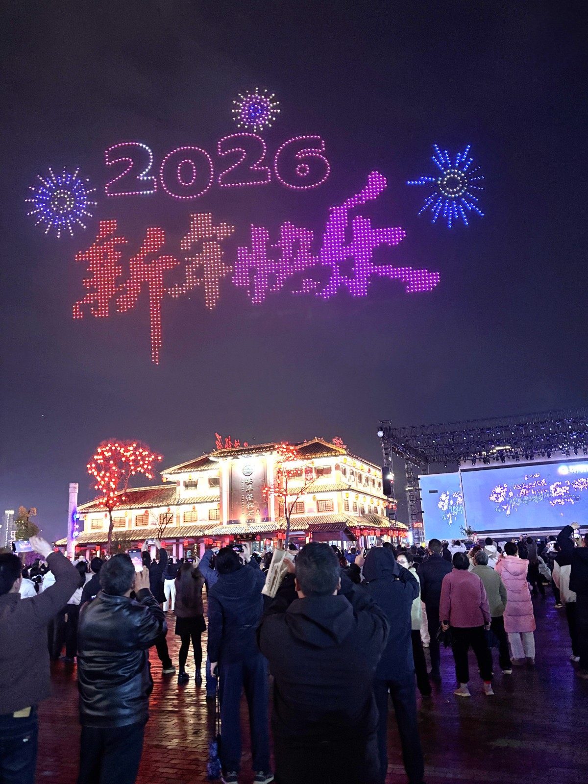 桃花源街区成为节日“网红打卡地”,白天逛市集、看民俗,晚上灯火璀璨,夜游、篝火晚会人气高涨,美食飘香与欢歌笑语交织,点燃城市烟火气,无人机3d光影秀璀璨点亮堵河,趣味互动接连上演,市民游客沉浸式感受新春乐趣。还有圣水湖游园会、非遗打铁花、滚龙舞狮等活动激发文旅市场活力,城乡处处洋溢着热闹喜庆的节日氛围。