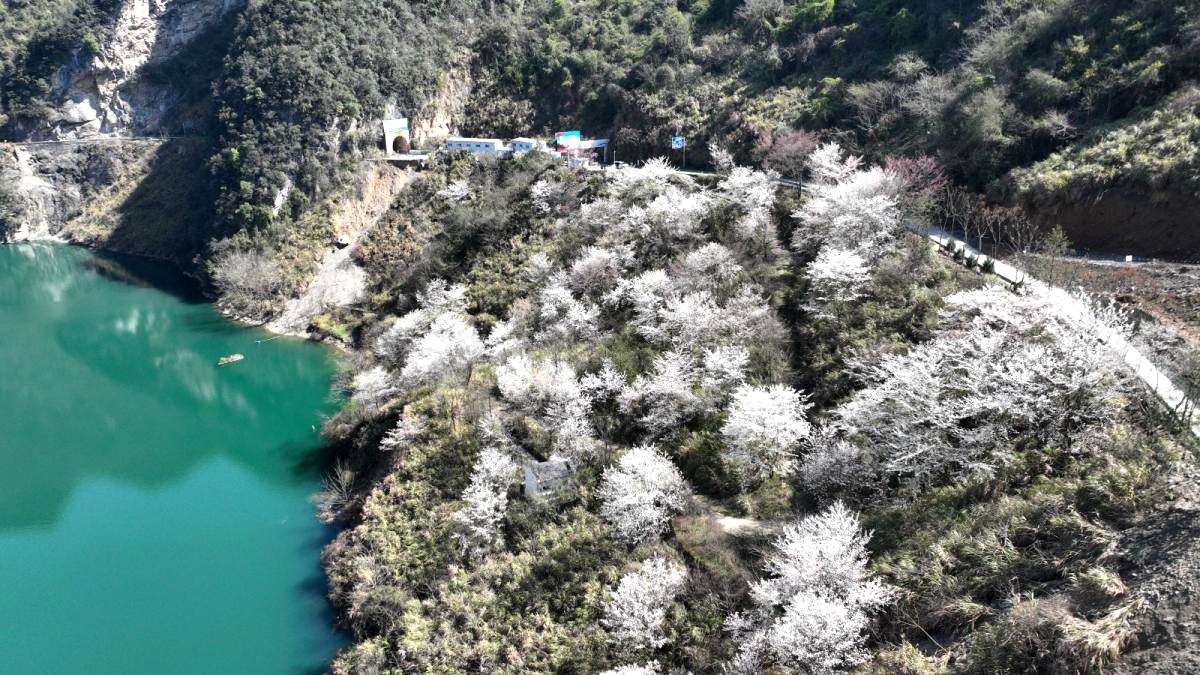 近日,记者沿官渡—柳林—洪大路一线,走进堵河源保护区,探访春日山景。行至 g242 国道松树岭路段,一片野桃林悄然绽放,粉白花枝交错成片,与蜿蜒山路相映成趣。沿途堵河碧绿如带,绕山而行,将沿途星点桃花串联成画。 (明  康 陶艺升 摄)